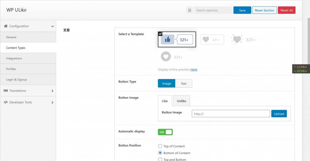 WP ULike插件是英文版,但是设置也不是很复杂,如果不懂英文,可以用翻译软件翻译。
