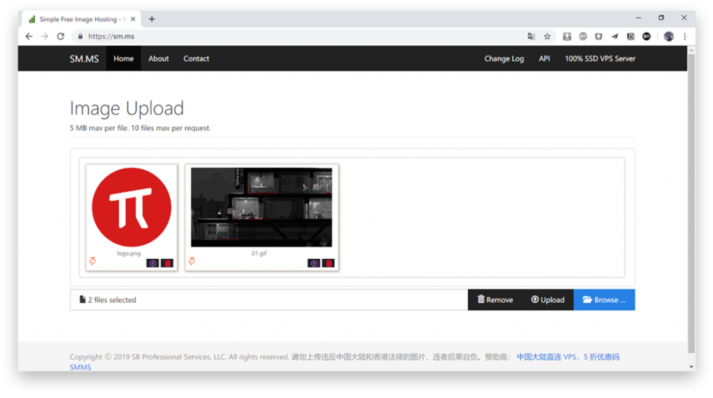 SM.MS 支持上传单张最大 5M 的图片,每次上传最多支持 10 张图片,适合作为主力图床使用。SM.MS 还提供了官方 iOS 和 Android 客户端,你可以在 App Store 或 Google Play 免费下载。你可以在 这里 使用 SM.MS。