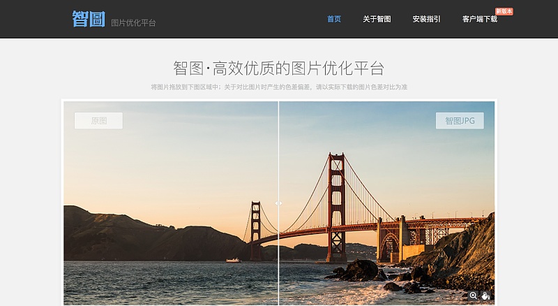 大家通过智图网站的域名可以看出来,智图客户端是由腾讯ISUX前端团队开发的一款图片智能压缩工具。智图支持图片格式转换,还能将图片以最优的格式进行压缩,其功能包括针对png,jpeg,gif等各类格式图片的压缩,以及为上传图片自动选择最优的图片格式。同时,智图平台还会为用户转换一份webp格式的图片。智图目前的是完全免费的,并且拥有PC端,大家也可以下载进行使用。