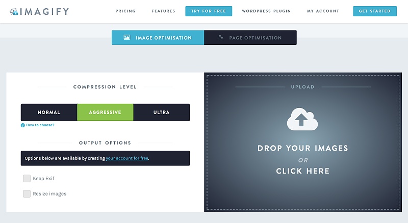 Imagery本身是为Wordpress网站提供的一个图片压缩的外挂,可以让你在Worpress网站上上传图片时对图片进行压缩处理。不过现在Imagify也为大家提供了网络在线的一些工具,免费的账户的话有一些图片的限制,每次上传和下载的图片的大小不能超过2M,优化后的图片将保存24小时。不过免费的账户已经完全可以满足我们的需求了。
